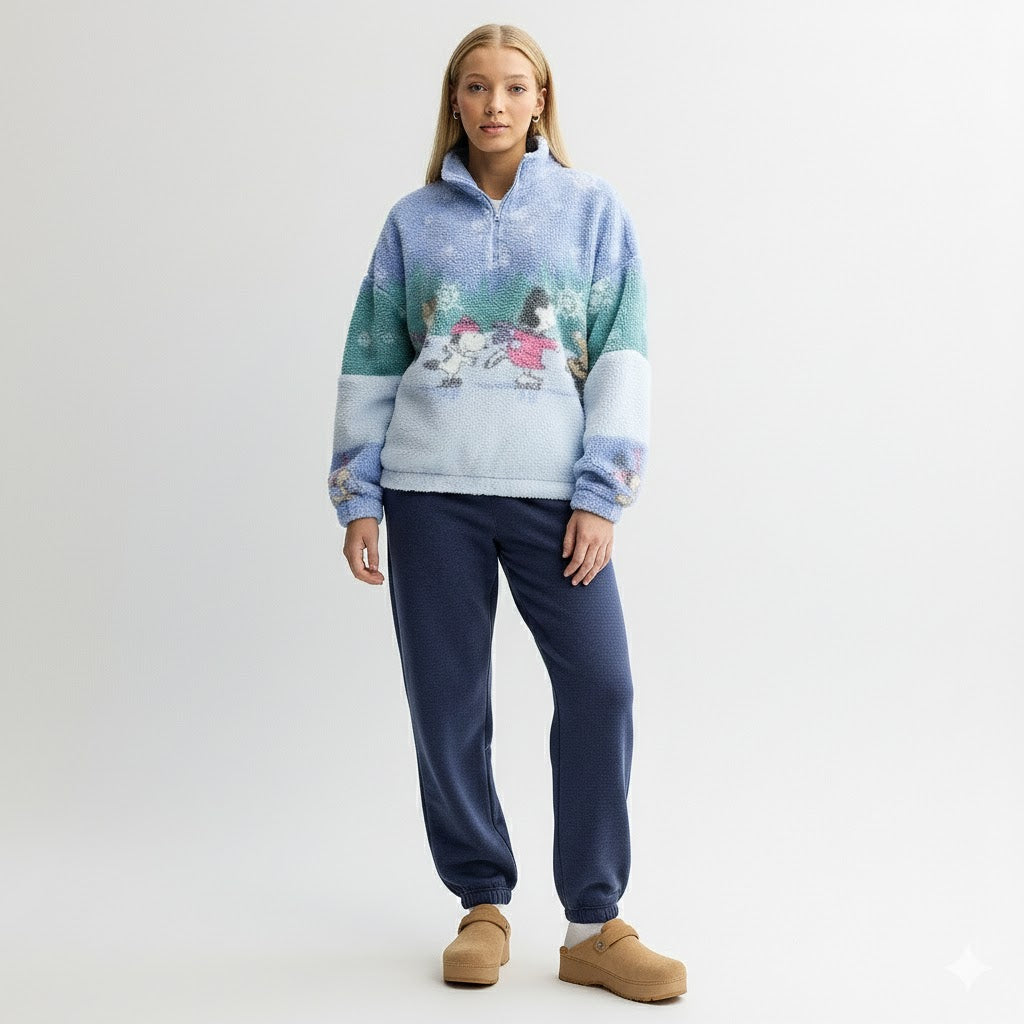 Snuggle up in ultra-soft sherpa fleece featuring Snoopy and friends in a charming winter scene. This quarter zip brings the perfect mix of warmth, comfort, and timeless Peanuts nostalgia.